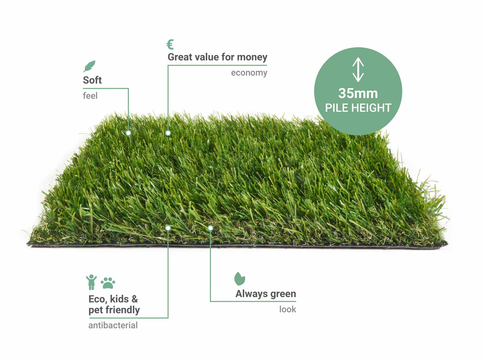 ALWAYS GREEN / DURABLE / RESILIENT / ECOMade to last —lush green for years to come.